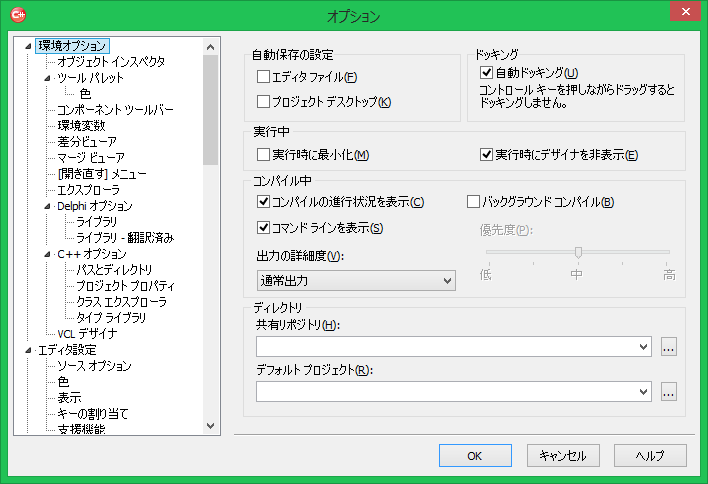 ここから、左にあるツリーの中から、環境オプション配下のVCLデザイナを選択します。すると以下のような画面が出てきます。