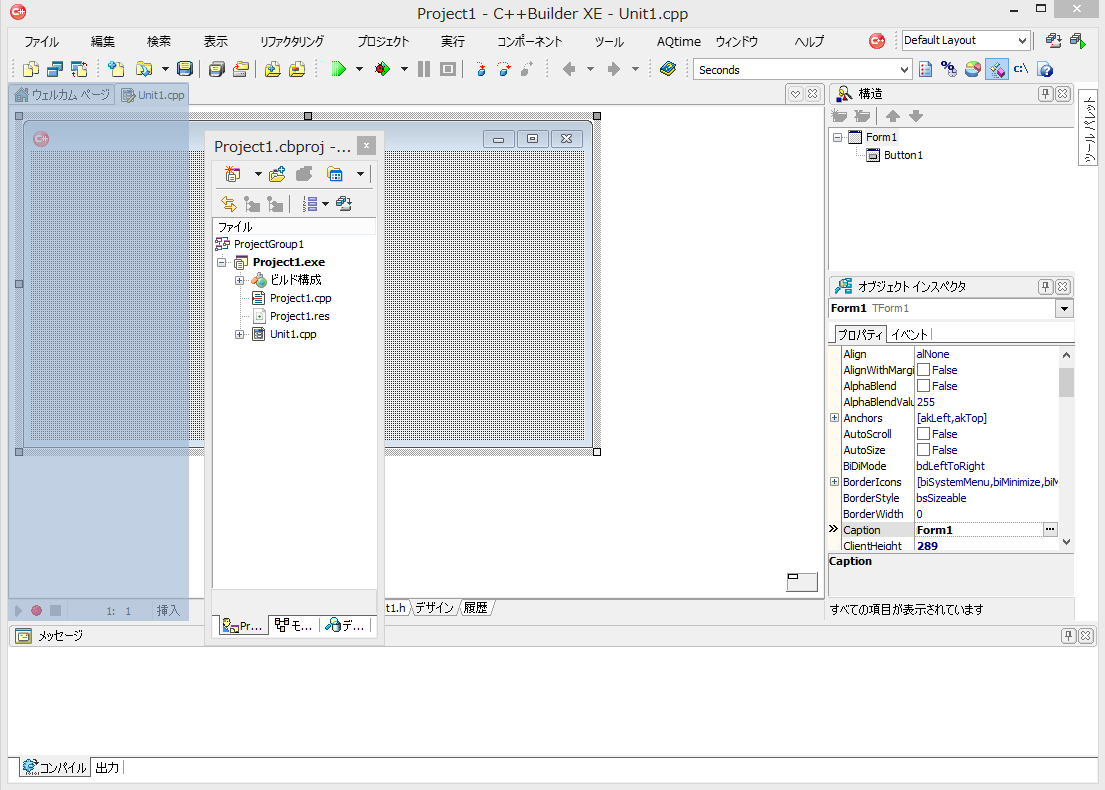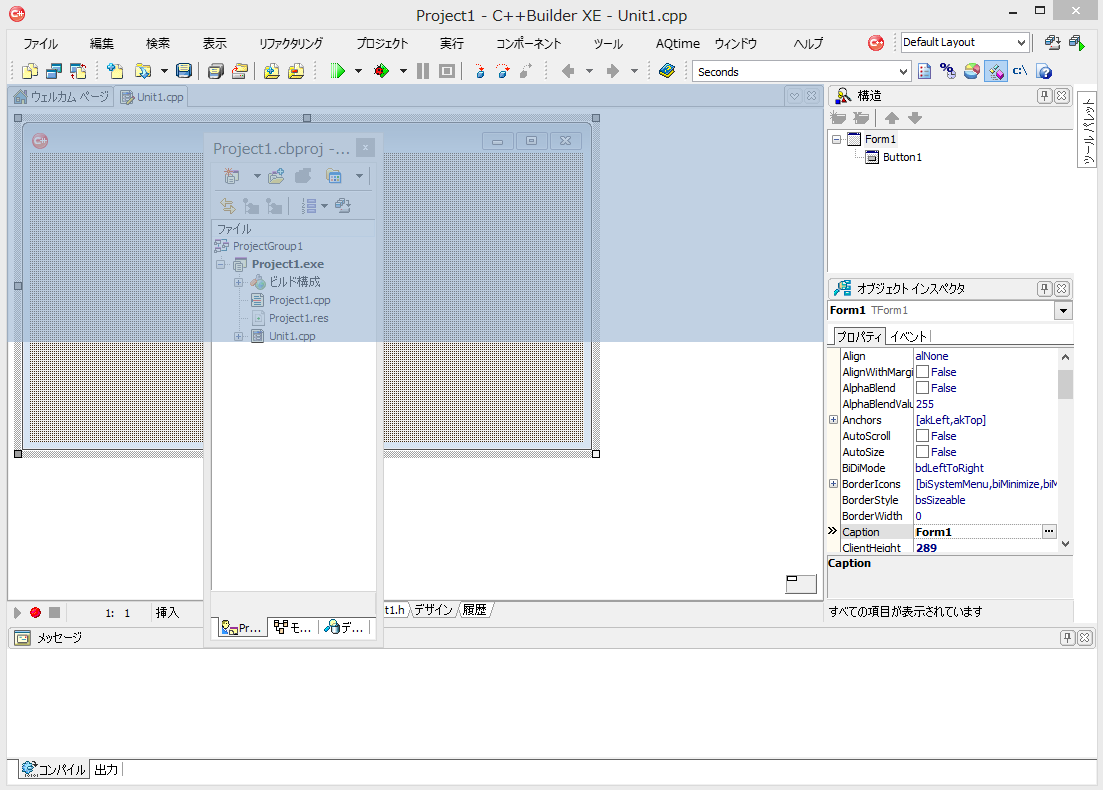 前回の画面写真では、筆者の環境と読者の環境でプロジェクトマネージャや構造などのウインドウの位置が違ったと思います。これは各ウインドウごとのタイトル部分をドラッグ&ドロップ出来るようになっていて、画面上の好きな位置に配置する事が出来るようになっています。