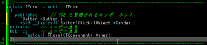 C++BuilderではVCLを利用するための独自拡張がされているので、__published:という部分がありますが、ここは統合環境が自動的に記入する部分で、通常この下に書き込むことはありません。